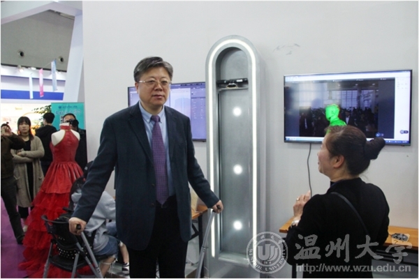 校长李校堃亲自体验三维虚拟仿真试衣项目