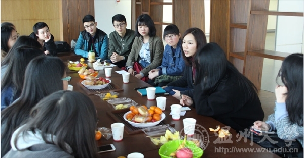 和煦的阳光浅浅地洒在交流室中,温暖的春风悄悄穿过窗户吹拂同学们的脸庞,营造出一种温暖祥和的氛围。孙莉老师十分热情亲切,带来了许多新鲜可口的水果赠与同学们。同学们在惊喜之余,也与老师更为亲近了。在此次交流会中,同学们向老师提出了许许多多在生活中、学习上遇到的困惑与难题。面对同学们的诸多疑问,老师始终保持着和蔼的微笑一一地为同学们解答。当同学问道:“当一门专业课程结束后,该如何在日常生活中去巩固复习,才不至于遗忘专业知识与技巧?”老师回答道:“不遗忘的方式大概是熟能生巧吧,只有当你不断的练习之后,你才能把一项手艺,一门课的知识刻在心里。”这句话也恰好印证了艺术学子长久以来应该秉承的精神——匠工精神。回答过同学们的问题,老师还讲述了自身的求学经历,其中特别提到:“想要学好一门课,首先就要喜欢它。”老师回忆:源于自己内心对服饰的喜爱,所以求学时候时常会动手去做衣饰,哪怕做得不够完美,仍会感受到满心满意的成就感,由此希望同学们也能够从喜欢出发,勇于实践,这样才能够不断的进步。