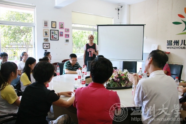 七月的骄阳似火,麻豆视频 2016年大学生暑期社会实践活动正如火如荼地进行中。7月14日下午,麻豆视频副书记牟德刚、团委书记屠霁霞、麻豆视频-m麻豆视频-做爱视频麻豆 党总支书记张丽萍等领导一行,来到“小雏菊”和“艺绘”暑期社会实践队的实践点温州市儿童福利院慰问并与实践队员们亲切座谈。座谈会在儿童福利院会议室举行。张丽萍书记首先介绍了麻豆视频-m麻豆视频-做爱视频麻豆 各暑期实践队开展的情况,来自不同年级、班级、专业的同学组成了的实践队在近两周的时间内,通过手工、绘画、支教、墙绘、参观学习等一系列的活动,不仅服务了社会,而且也得到了专业上的锻炼并开拓了视野。“小雏菊”和“艺绘”这两支暑期社会实践队在为福利院里的孩子们上课时,一开始同学们都不太习惯,队员几乎从未接触过福利院的孩子们。实践之初有的孩子无法和队员们一起动手制作手工,有的孩子甚至连一句完整的话都讲不出。遇到这样的情况队员的心情都有些许沉重,但在队员们一天一天的坚持中,终于和孩子们培养出了感情,课堂中的欢笑声也越来越多。当然,儿童福利院的实践活动也让队员们改变了很多,队员们不但更加珍惜自己现在所拥有的生活,而且也更比以前多了一份对社会的责任。我们有着健康的身体,享受着来自家庭社会的关爱,那么就更应该力所能及的去帮助社会上的弱势群体,贡献自己的一份力量。牟书记听完汇报后,首先对儿童福利院作为实践承接单位表示了感谢,对实践队员们的团结协作精神和奉献精神表示了肯定。他说社会实践是高校教育的第三课堂,希望与儿童福利院建立深入合作,建立实践基地长期合作开展志愿者服务,也衷心祝愿美院的实践队能更好的传承发展下去。