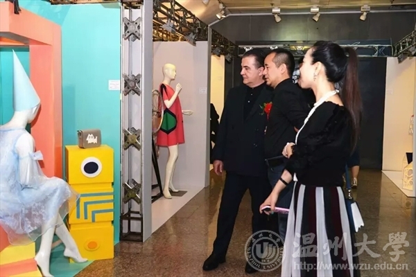 意大利奢侈品行业协会首席代表Francesco Fiordelli参观服装展示作品