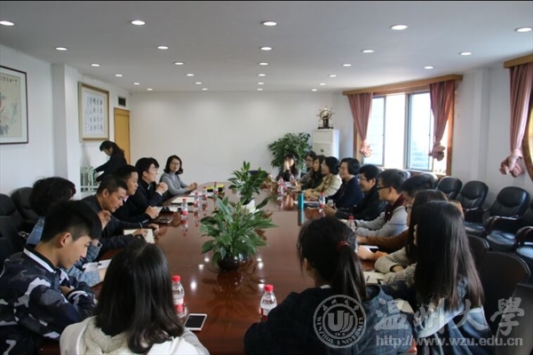 林校长向谢子静副院长以及实习学生介绍学校情况