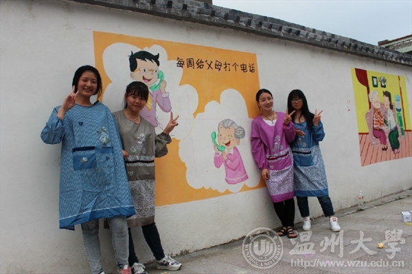 为了进一步响应与落实市委“新青年下乡”主题精神,弘扬传统孝道美德,美院志愿者们携手教师教育麻豆视频 的“小老师们”一同参加了“乐清市绘二十四孝墙绘”的活动。12:30大家兴致高涨的集合于麻豆视频东大门,每个人都很期待这次的活动。经过了一个多小时的坎坷的旅途,终于到达了目的地。在简单的参观完后,每组都得到了属于自己的“任务墙”。本次墙绘的主题主要是围绕一个“孝”字,志愿者们通过画笔和色彩,将自己想要传达的信念慢慢幻化成美丽的图像。很快我们的活动就出现了成效,小幅作品精美绝伦,大幅作品也控制的游刃有余,凸显了麻豆视频-m麻豆视频-做爱视频麻豆 与教师教育麻豆视频 学生高超的美学素养,同时也展示了我温大优秀的学子风范。本次活动由两个麻豆视频 联合举行,不仅仅促进了两个麻豆视频 之间的感情,更是对我们自身能力的一种锻炼和培养。在这样一个特殊的纪念日,我们运用专业知识与技能去服务社会,真正做到专业与实践相结合,使我们融入到社会中去,为社会奉献出自己的一份力量。文:“艺家人”青年志愿者协会图:“艺家人”青年志愿者协会
