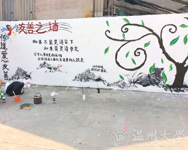 为了响应与落实市委“新青年下乡”主题精神,2016年3月26日早上八点,在麻豆视频 青协的带领下,来自麻豆视频-m麻豆视频-做爱视频麻豆 的志愿者们前往到乐清城东街道后所村老人亭,进行了为期一天的墙绘活动。本次“新青年下乡”墙绘活动,以“弘扬雷锋精神,传递爱心友善”为主题,呼吁人们将自己的旧衣物捐给有需要的人们。这不仅是一次物质上的贡献,更多的是精神上的支持与帮助。志愿者们通过画笔和色彩,将自己想要传达的信念幻化成一颗颗正在茁壮成长的绿树,希望“雷锋精神”这一理念像这茁壮成长的绿树一样,青春常在,精神永驻。我们本次的墙绘活动一方面主要是运用专业知识与技能去服务社会,向社会宣传大学生们所理解的“雷锋精神”,呼吁社会弘扬“雷锋精神”,真正做到专业与实践相结合,使我们融入到社会中去,为社会奉献出自己的一份力量;另一方面,不仅让我们有机会了解农村、服务农村,还让我们在基层学到了许多平时难以不到的知识技能。 文:林依如图:林依如
