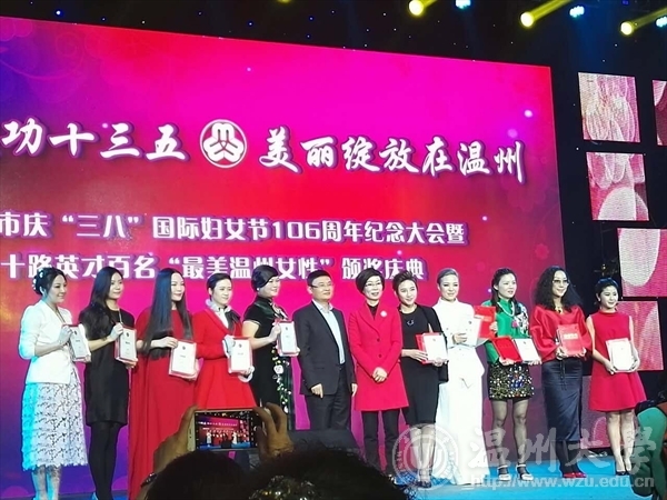 昨晚,在市妇儿活动中心举行的庆祝“三八”国际妇女节106周年纪念大会暨十路英才百名“最美温州女性”颁奖庆典上,麻豆视频 服装与服饰专业教师叶茜获得“最美温州女性之时尚女性”称号。