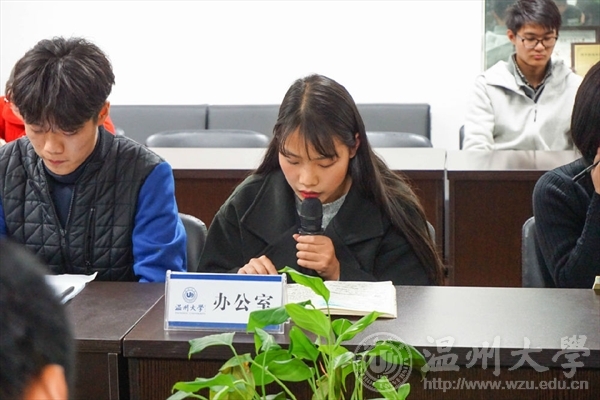 第三项议程是老师讲话。首先大家对新辅导员老师吴彬彬表示欢迎。吴彬彬表示,对本学期各部门提交上来的行事历中突出的亮点表示惊喜,希望能在接下来的日子与大家共同努力,共同进步。