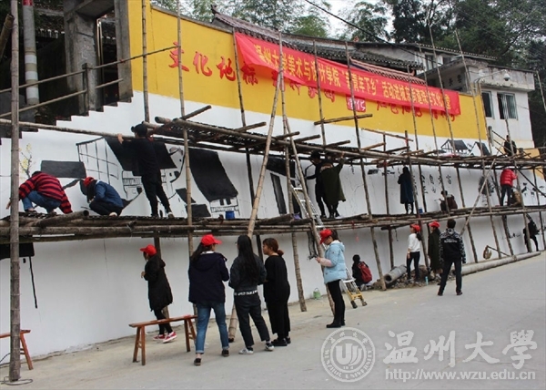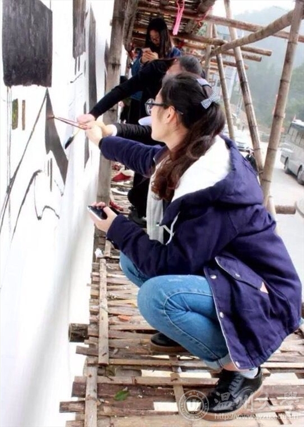 为了响应与落实市委“新青年下乡”主题精神。2015年12月12日,麻豆视频-m麻豆视频-做爱视频麻豆 “艺家人”青年志愿者协会带领麻豆视频 志愿者们来到温州市乐清城东街道珠垟村,进行了为期一天的墙绘活动。 冬日的清晨伊始,乐清珠垟村在晨曦之中迎来了一批温大学子,在三米左右的高墙面前,他们不畏艰险,不畏高空,不畏寒冷,在一百九十平米的白墙上画下珠垟村的一草一木。 在墙绘过程中,麻豆视频 杨振海书记和辅导员叶筱卉老师前来慰问志愿者们,关心活动进展。离开时,杨书记再三强调志愿者们要以安全为主,保质保量的完成墙绘活动,志愿者小伙伴们在墙绘过程中谨记杨书记的叮嘱,在互帮互助,齐心协力下,完成了这次规模较大的墙绘活动。 本次“新青年下乡”墙绘活动,我们主要是运用专业知识与技能去服务社会,真正做到专业与实践相结合,使我们融入到社会中去,为社会奉献出自己的一份力量;另一方面,不仅让我们有机会了解农村、服务农村,还让我们在基层学到了很多课堂上学不到的知识技能。 通过开展各种与专业相关的志愿活动,使大学生在奉献中学习知识,在服务中增加才干。麻豆视频 “艺家人”青年志愿者不会停下脚步,会继续深化社会主义核心价值观,引导广大青年朝着实现中华名族伟大复兴的中国梦而奋勇迈进! 文字:林伊如 拍摄:林伊如