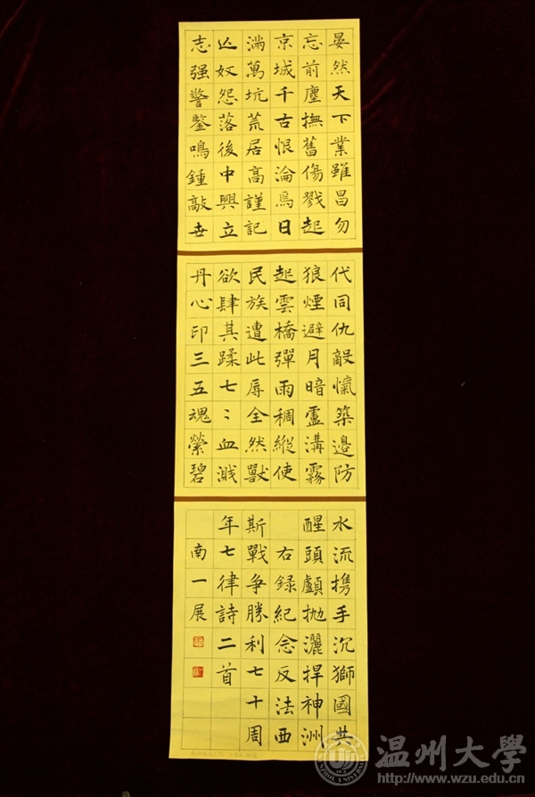 为纪念中国人民抗日战争暨世界反法西斯战争胜利70周年,传承爱国主义精神,弘扬社会主义核心价值观,激发民族自尊心、自信心和自豪感。自9月份发出通知以来,“纪念中国人民抗日战争暨世界反法西斯战争胜利70周年”书画大赛共收到特邀教职工书画作品共计29件,学生书画作品共计196件,经相关书画专家对学生绘画类和书法(篆刻)类作品严格评审,现将评比结果公布如下:?xml:namespace>