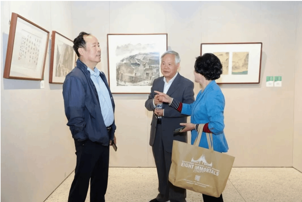 合影结束后,林海钟会长带队导览,结合作品讲解山水笔墨的传承与创新,引导嘉宾感受“致广大而尽精微”的山水艺术境界。