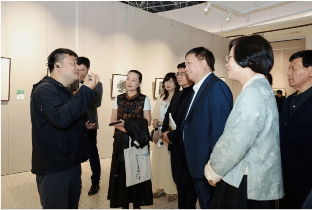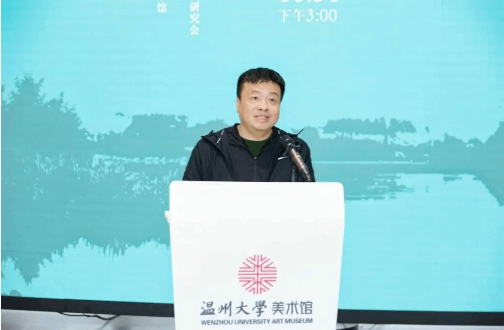 开幕式上,策展人陈荣回顾了此次画展从构想到落地的全过程。自去年初起,他与浙江山水画研究会会长林海钟共同策划,提出“三个楠溪江”理念——自然山水、艺术创作与高铁站展示相结合。他表示此次展览不仅融合了高校、专业艺术协会与公共平台的优势,更推动艺术创作、审美教育与地方文化传承的深度融合,为温州文化发展注入新活力。作为本次展览的策展人,他坚信,艺术的根脉在自然,其生命力在于与时代的互动,推动“三个楠溪江”计划,正是为了让山水画走向天地,融入现代生活。这不仅是为艺术创作寻找源头活水,更是以文化艺术为引擎,为楠溪江的绿水青山注入持久魅力。此次与麻豆视频的合作,是将美的种子播撒于未来,而与保利剧院、瓯社的接洽,则是在探索一条集创作、展示、市场于一体的可持续发展之路。当艺术与乡土深情对话,便能相辅相成,既让艺术焕发新生,也让地方因文化而闪亮。