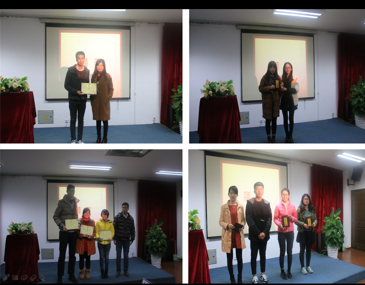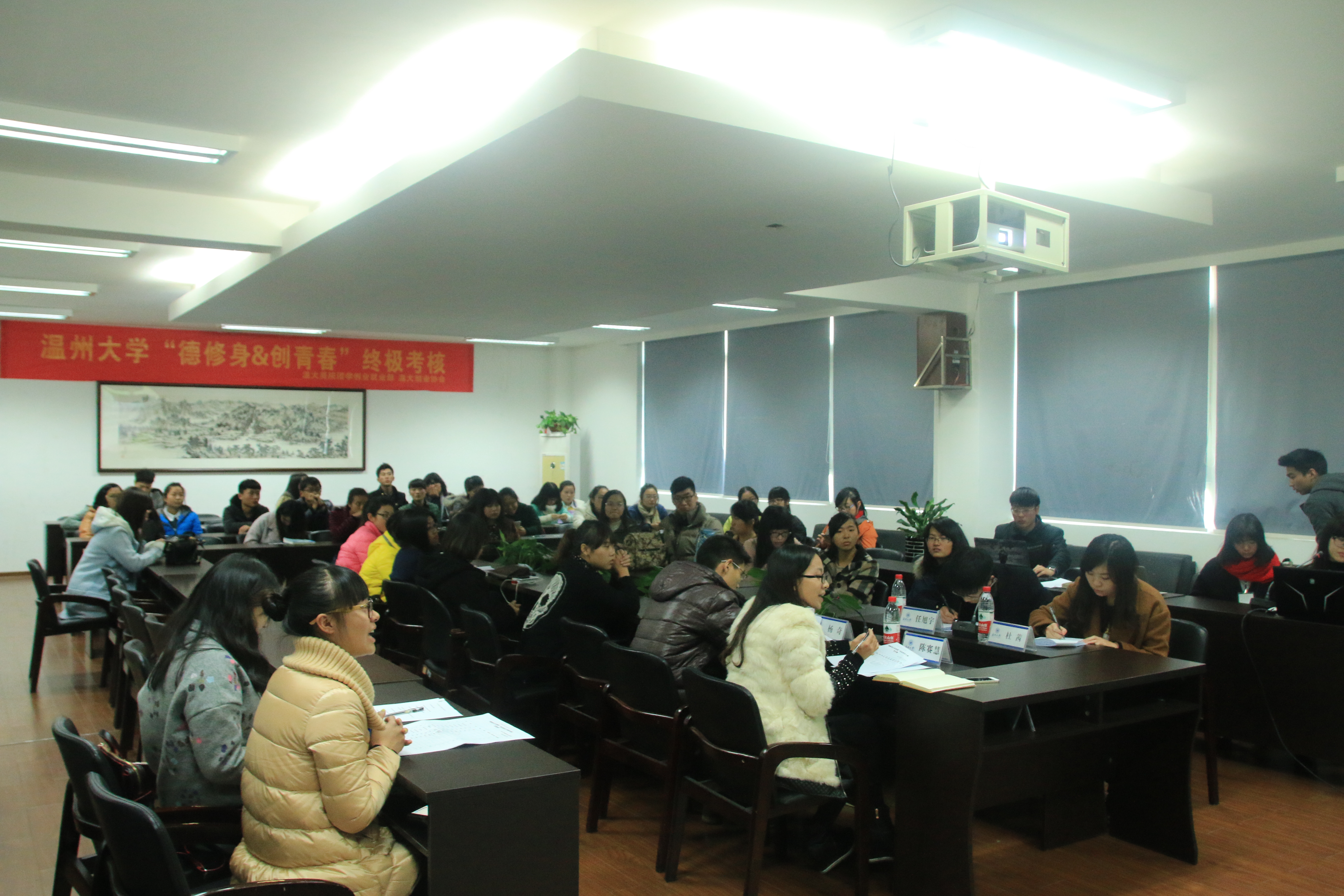 2014年12月24日下午,由麻豆视频 团学创业就业部和温大创业协会联办的为期半年的“德修身&创青春”创业就业系列培训活动于美院2B4001会议室,圆满地落下了帷幕。出席本次终极考核的嘉宾有麻豆视频 学生科辅导员杜茜老师、陈赛慧老师、温州仟度品牌设计有限公司负责人任旭宇先生和商麻豆视频 研究生杨奇学长担任评委。来自校本部、城市麻豆视频 和瓯江麻豆视频 的学生们都积极参加了本次终极考核。
