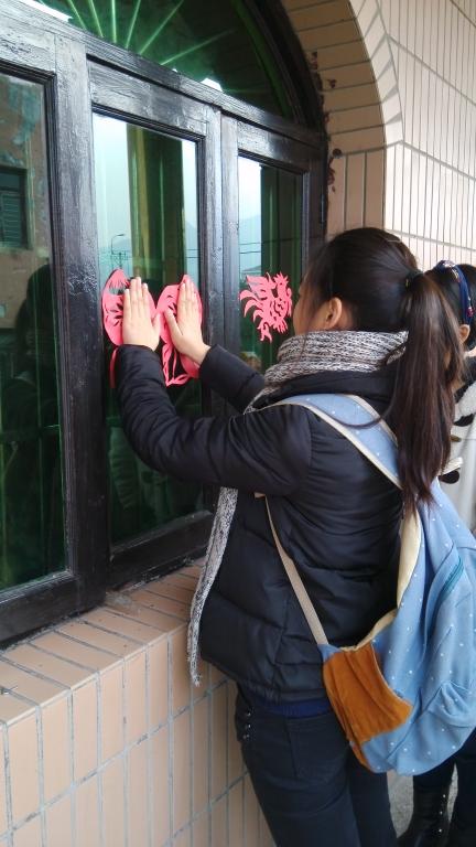 志愿者们分工有序,在精通瓯语的志愿者和老人亲切交流的同时,房间里的其他志愿者也开始了手工艺品的制作。红色的玫瑰花,粉红色的水仙花,可爱的“寿”字剪纸,没多久便在志愿者们的巧手上“诞生”了。志愿者们娴熟的技术也吸引了房间外其他老人的驻足围观,房间里房间外一片欢声笑语。在活动接近尾声的时候,志愿者将自己亲手做好的花一一送给了老人,并将各种象征美好寓意的剪纸贴在窗户上,在老人和志愿者们的依依不舍中,这次“送温暖”活动也落下了帷幕。