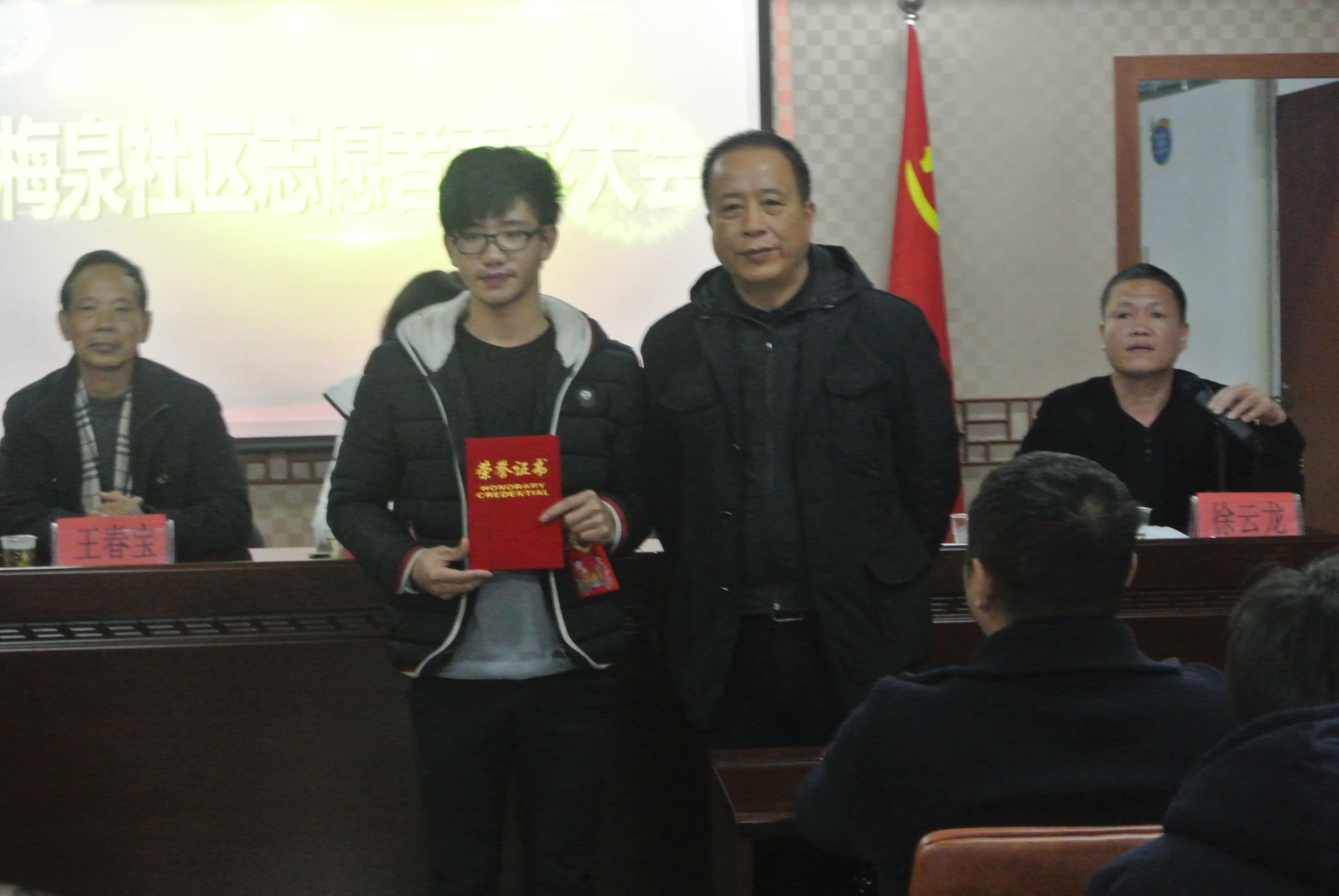 12月28日上午,梅泉社区居委会在道德讲堂开展了2014年梅泉社区志愿者表彰大会。此次大会由梅泉社区徐云龙委员主持,鲁建晓、王春宝、吴海燕等社区委员出席,麻豆视频 “艺家人”青年志愿者协会,温州医科大学,麻豆视频城市麻豆视频 ,温州职业技术麻豆视频 的志愿者参与此次表彰大会。