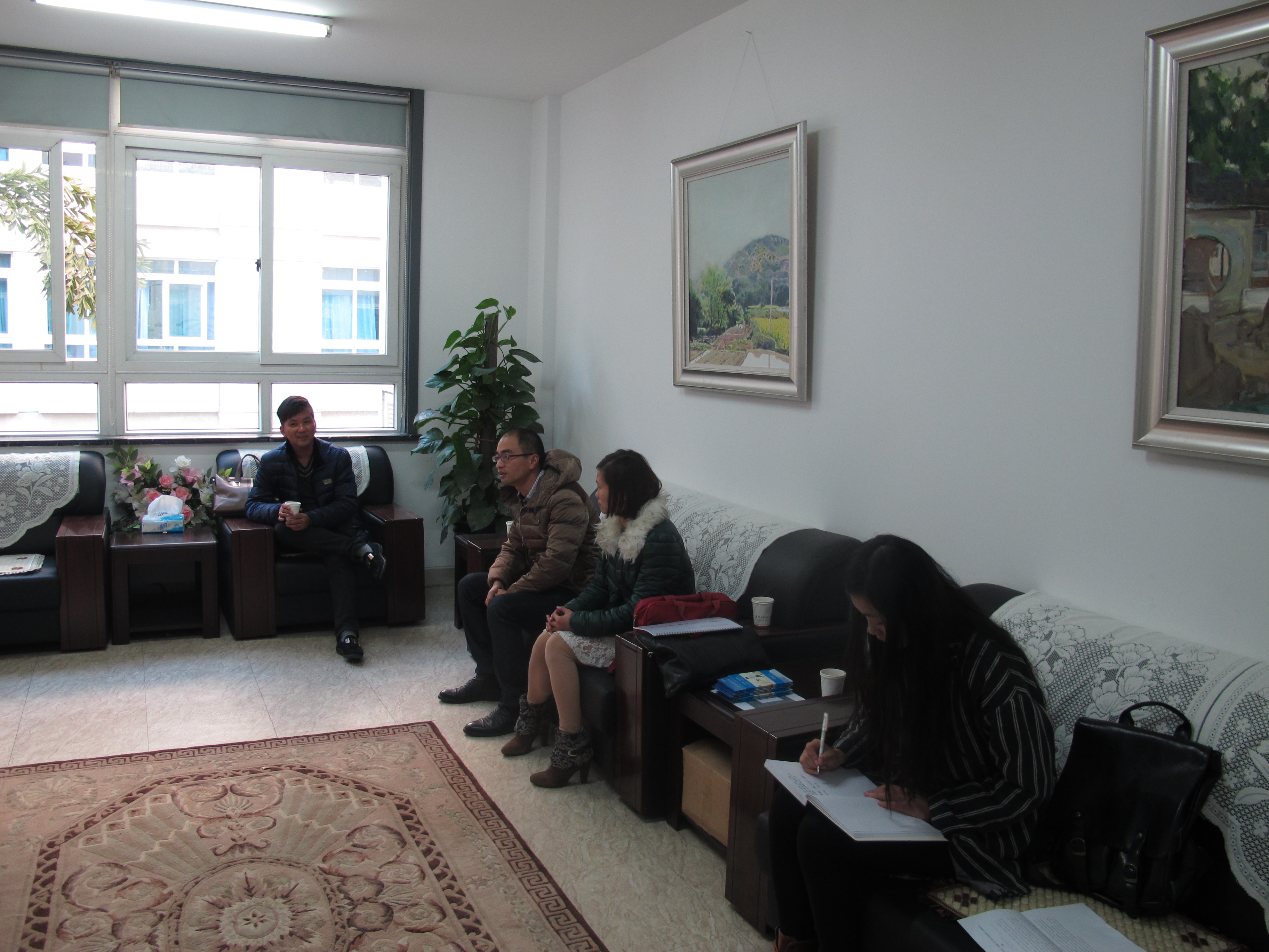 2014年12月30日下午,瑞安市星儿爱心服务社会中心理事长鲍颖女士一行在我校校团委曾国仕老师的陪同下,前往我院与“艺家人”青协进行合作洽谈,麻豆视频 党总支副书记杨振海,学生科副科长叶如芳,辅导员杜茜,“艺家人”青年志愿者协会会长冯瑜瑜等参加了此次座谈。会议主要围绕如何加强双方公益志愿的合作而展开。