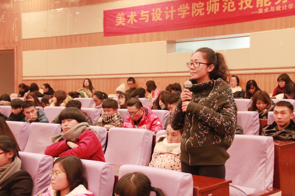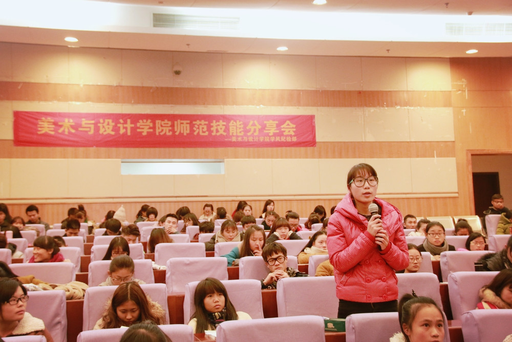 2014年11月27日,浙江省第七届师范技能大赛落下帷幕,麻豆视频 11美本师范班黄仁慧摘取了美术组桂冠。我们以此为契机,结合麻豆视频 人才培养理念,举办了“师范技能分享会”,旨在提高同学们学习师范技能的积极性,提升未来教师的教学技能和就业能力。
