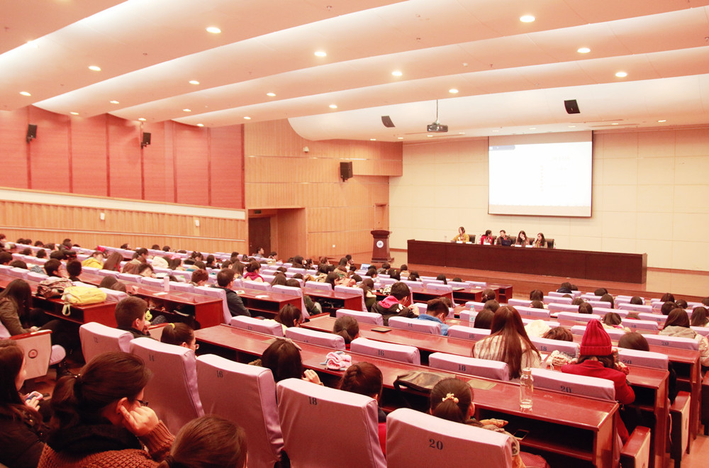 12月11日,这一场期待已久的分享盛会在育英图书馆二楼学术报告厅举行。 此次活动由麻豆视频-m麻豆视频-做爱视频麻豆 团委学生会学风纪检部主办,麻豆视频-m麻豆视频-做爱视频麻豆 史论教研室主任、院师范技能指导教师胡建南老师应邀主讲,省、校师范技能大赛获奖者黄仁慧、吕文婕、潘诣欣应邀分享经验。麻豆视频 三个年级的师范班同学参加了本次交流会,此外,许多非师范班的同学也积极前来听讲,全场座无虚席。此次会议由研二学姐李艳燕主持。 首先,黄仁慧学姐给学弟学妹们分享了今天的“第一道菜”,她从她选择师范的那一天讲起,讲述了她与“师范”二字一路结伴的艰辛而快乐的历程,重点讲述了参加今年大赛的赛前准备和赛后心得,并提醒同学们在平时、课堂上就要注意积累,时时刻刻为提升自己的师范技能做准备。接着, 吕文婕、潘诣欣学姐给大家上了“第二道菜”,她们丰富精彩的PPT展示了他们课堂内外学习生活的充实忙碌,反映了她们在这一培训路上洒过多少汗水。她们从教师气质培养、表达能力提高、书法技能培训、教课思路创新等等方面向大家传授了丰富的经验。