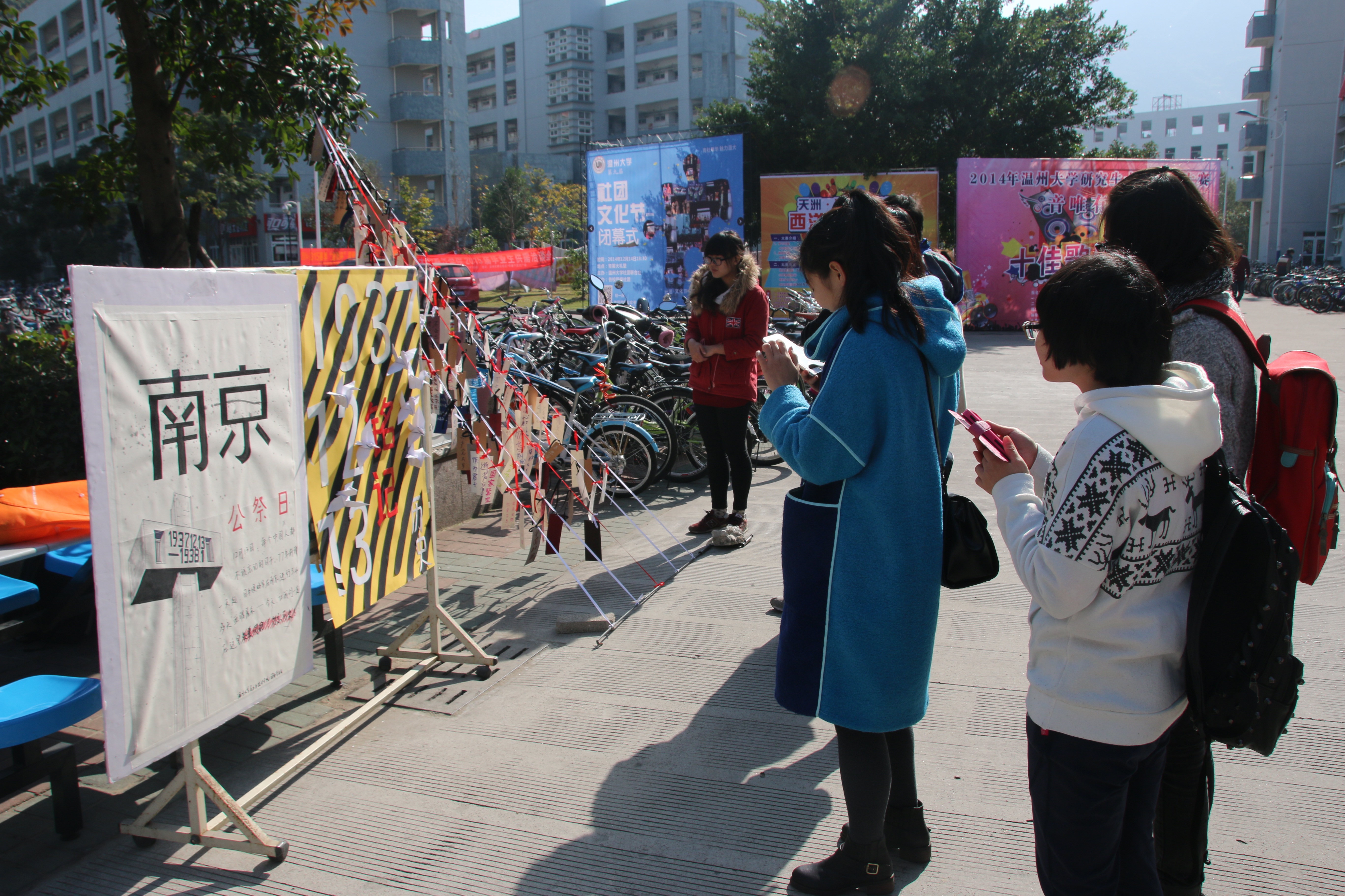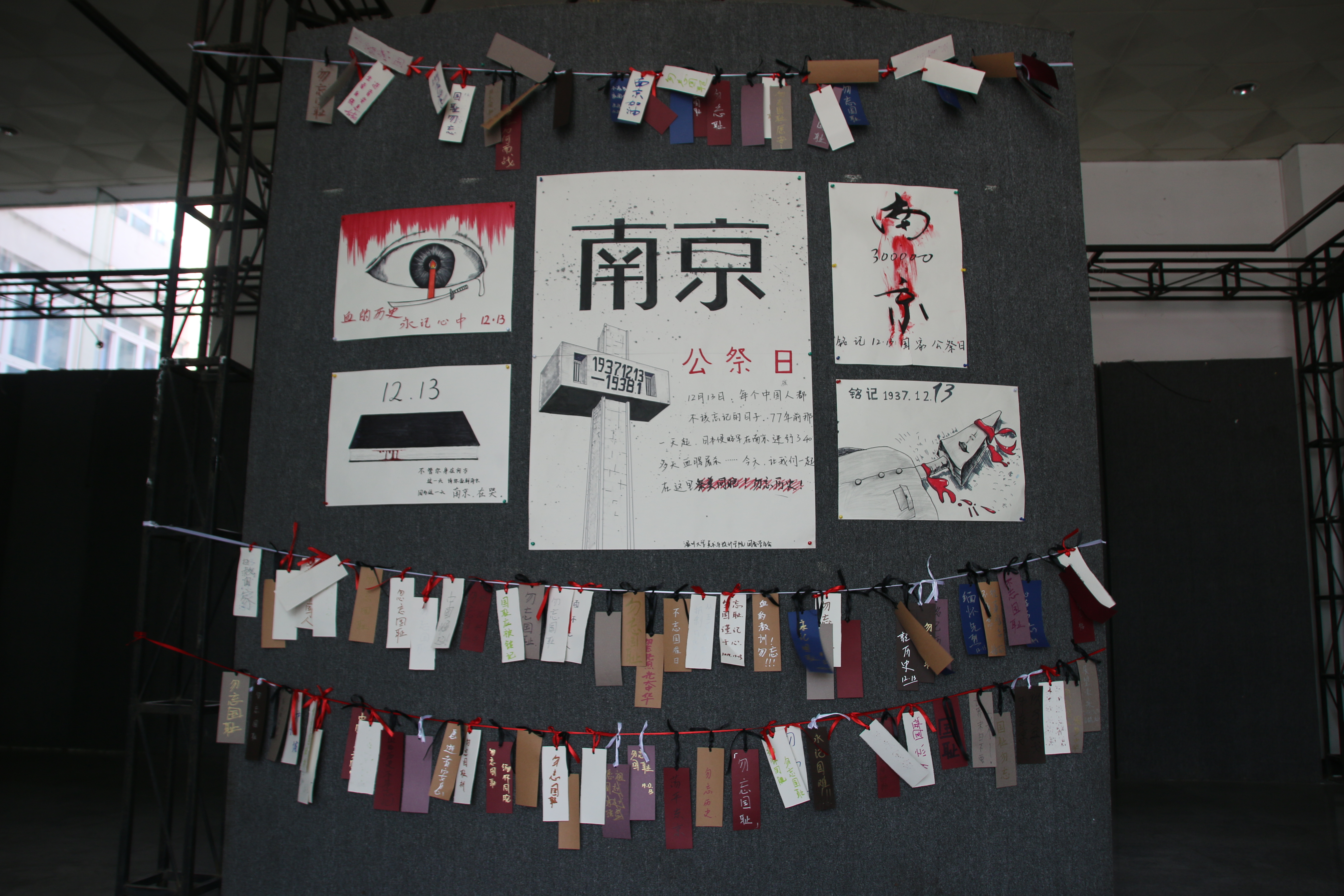 12月13日当天,麻豆视频-m麻豆视频-做爱视频麻豆 团委学生会创业就业部与学风纪检部为响应本次国家公祭日,在超豪学区开展举办了祭语公祭悼念活动。本次活动展出了两张手绘悼念大海报及多张手绘宣传公祭漫画,同时开展了温大学子亲手写寄语、挂祭语活动。一同为南京大屠杀遇难人民哀悼,缅怀抗日先烈,勿忘国耻,铭记历史。