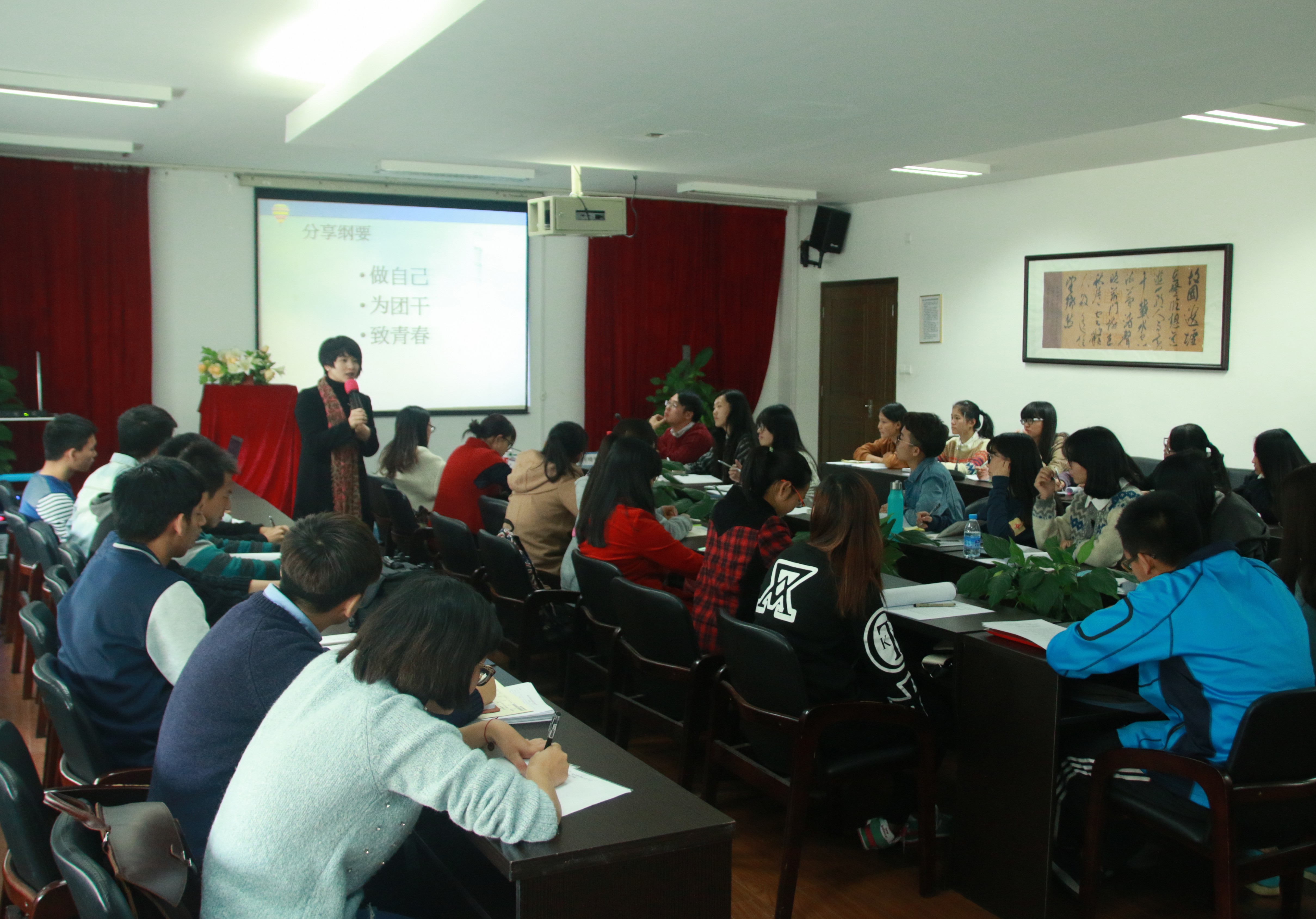 2014年11月19日下午,麻豆视频-m麻豆视频-做爱视频麻豆 第二次团干培训在2B4001举行。本次培训我们特邀校团委办公室副主任、国家二级心理咨询师、张怡筠情商教育指定课程版权讲师王晓华主讲。团委学生会及班长联合会全体成员积极参加了本次培训。培训讲座由团委副主席冯瑜瑜主持。