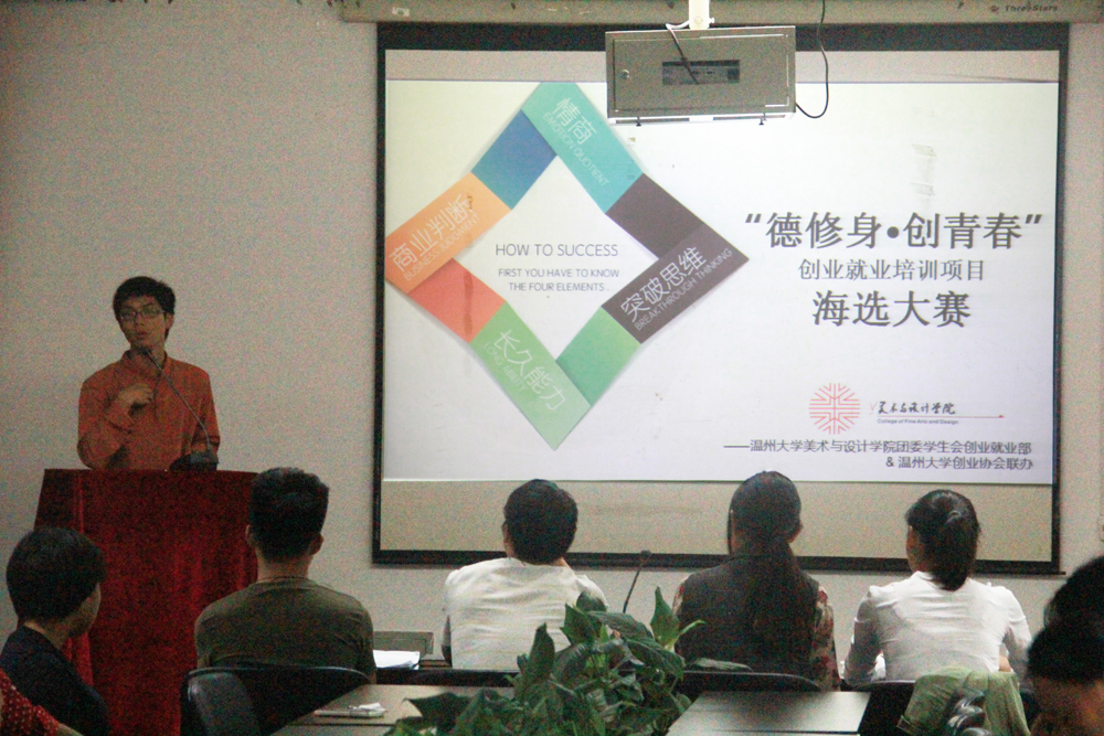 10月18日下午,麻豆视频 团委学生会创业就业部和校创业麻豆视频 创业协会联办的“德修身&创青春”创业就业培训项目的海选大赛在2B4001拉开序幕。团委副书记金李斌,创业就业部副部长张昇、胡霜霜,研究生代表李艳燕、张娜,共同担任了此次大赛的评委。来自学校不同年级的同学参加了本次海选。