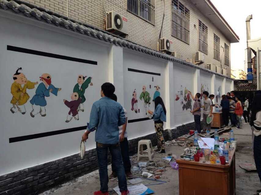 10月25日,麻豆视频 “艺家人”青年志愿者协会和温州怡乐如老人公寓合作举办了“为老人添一抹色彩”墙绘活动。墙绘均以“孝悌忠信,礼义廉耻”为主题,总共有30多名志愿者和青协成员参与了此次活动。 此次活动主要是对怡乐如老人公寓里的7面白墙以及一扇门进行墙面设计。活动开始后志愿者们并没有急于开始墙绘,而是对房间布局,老人喜好进行了观察了解,初步统一了墙面的色调以及大小。随后将所有志愿者以4—5人为一组分成八组负责各自墙面。志愿者们结合专业认真绘制,很快一幅幅墙绘作品就呈现在大家面前,成为社区中一道亮丽的风景线。灰头土脸的围墙经过志愿者的巧手焕然一新,让志愿者感觉生活在了一个新社区中。尽管时间紧促,各组志愿者组内却能做到各自合理分工、相互合作,有的人定形,有的人上色,有的人修改,在规定时间内保质地完成了墙绘工作,得到了公寓负责人和老人们的一致好评。 志愿者们通过此次活动理解了团队合作的重要性,加深了关爱老人的意识,也进一步弘扬了志愿者精神。也希望通过“孝悌忠信,礼义廉耻”主题的绘画创作,传递中华传统美德,渲染关爱老人的氛围,无形中感染周围的居民,为创建和谐社会做一份贡献。