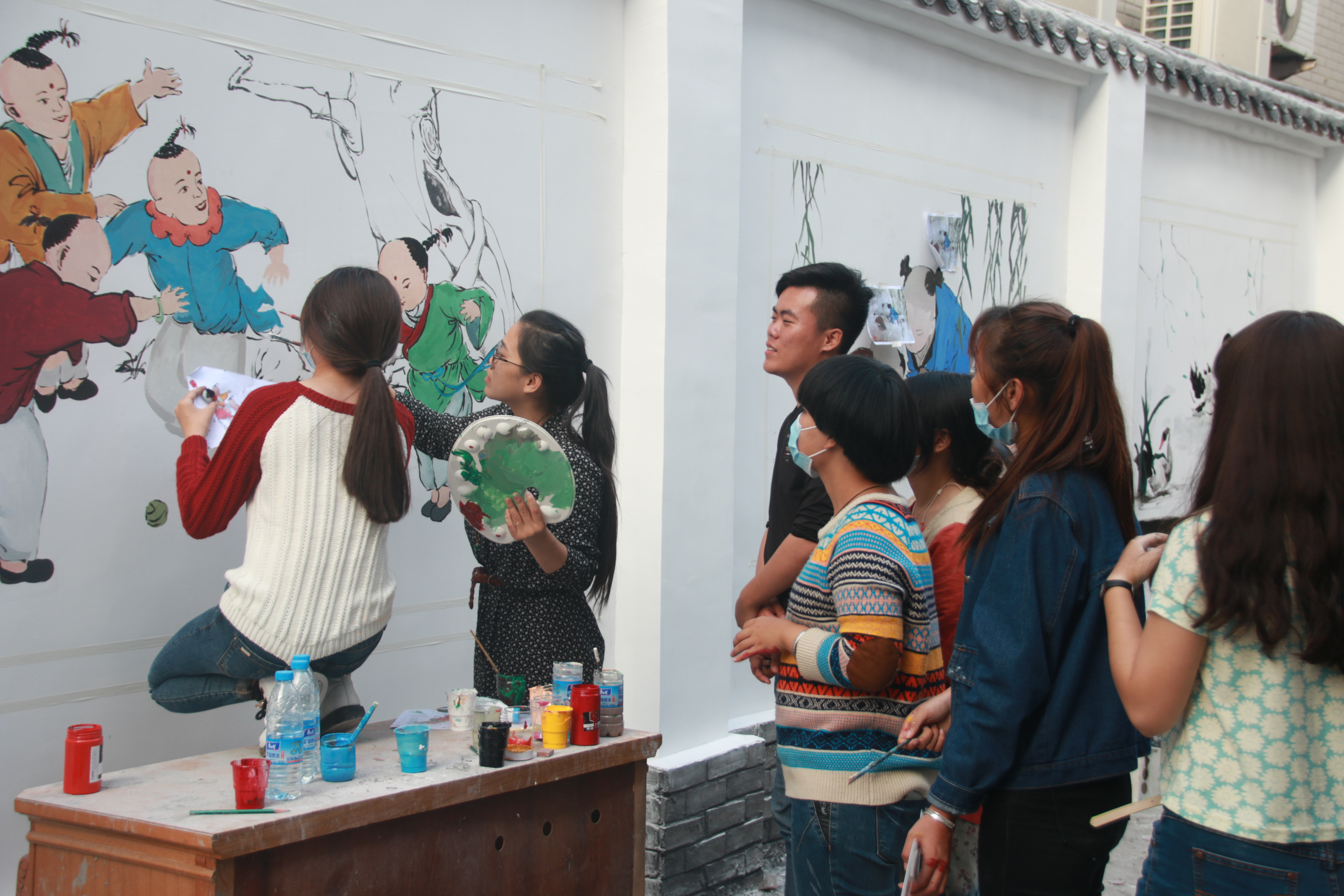10月25日,麻豆视频 “艺家人”青年志愿者协会和温州怡乐如老人公寓合作举办了“为老人添一抹色彩”墙绘活动。墙绘均以“孝悌忠信,礼义廉耻”为主题,总共有30多名志愿者和青协成员参与了此次活动。