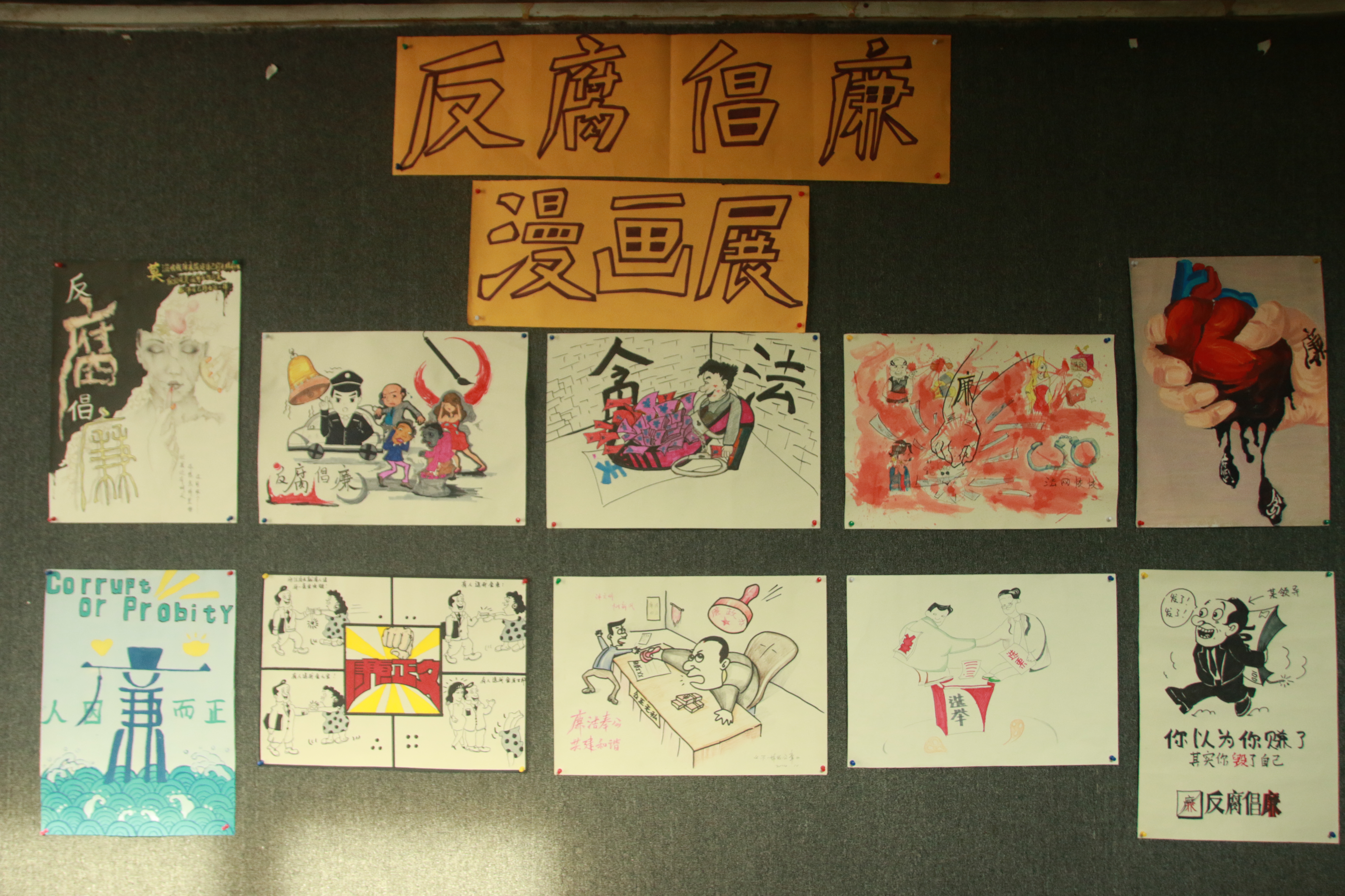 此次“反腐倡廉”漫画比赛,可以更好地营造社会风气,树立崇高的理想,端正自己的做事态度,明确自己的人生方向。从而达到活动所想要的效果和目的,并且能丰富同学们的课余生活,提高学生的艺术素质,促进学生全面发展。
