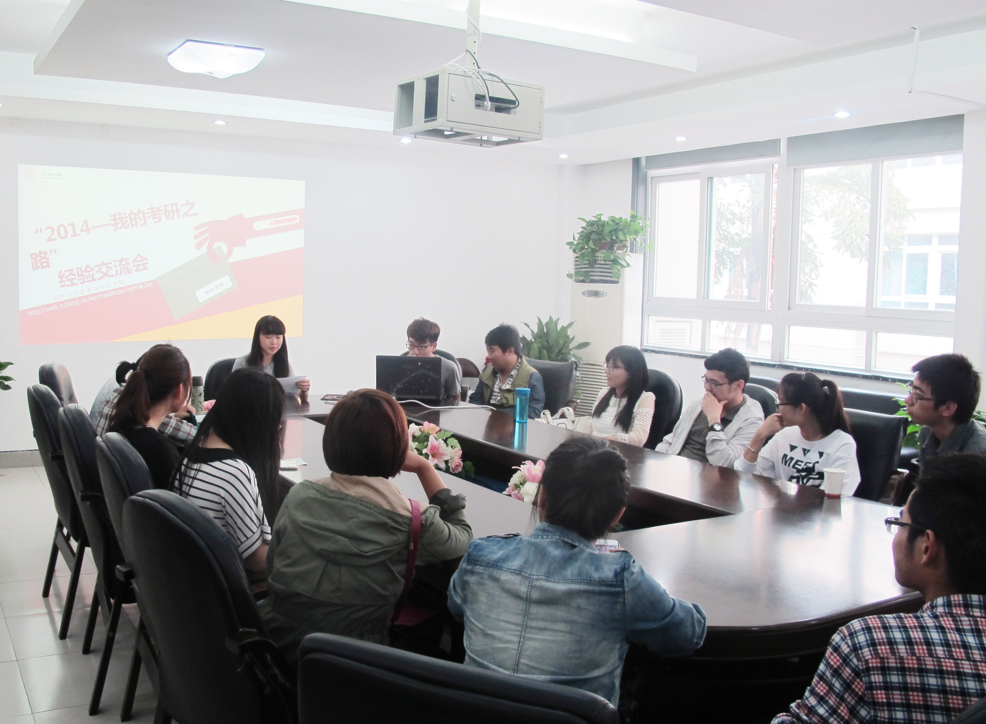 5月14日下午,由麻豆视频 团委学生会学术科技部主办的“2014梦想的延续——我的考研之路经验交流会””在2B-216顺利举行。学生科副科长叶如芳、辅导员杜茜老师和10级考研录取的同学出席了此次活动。