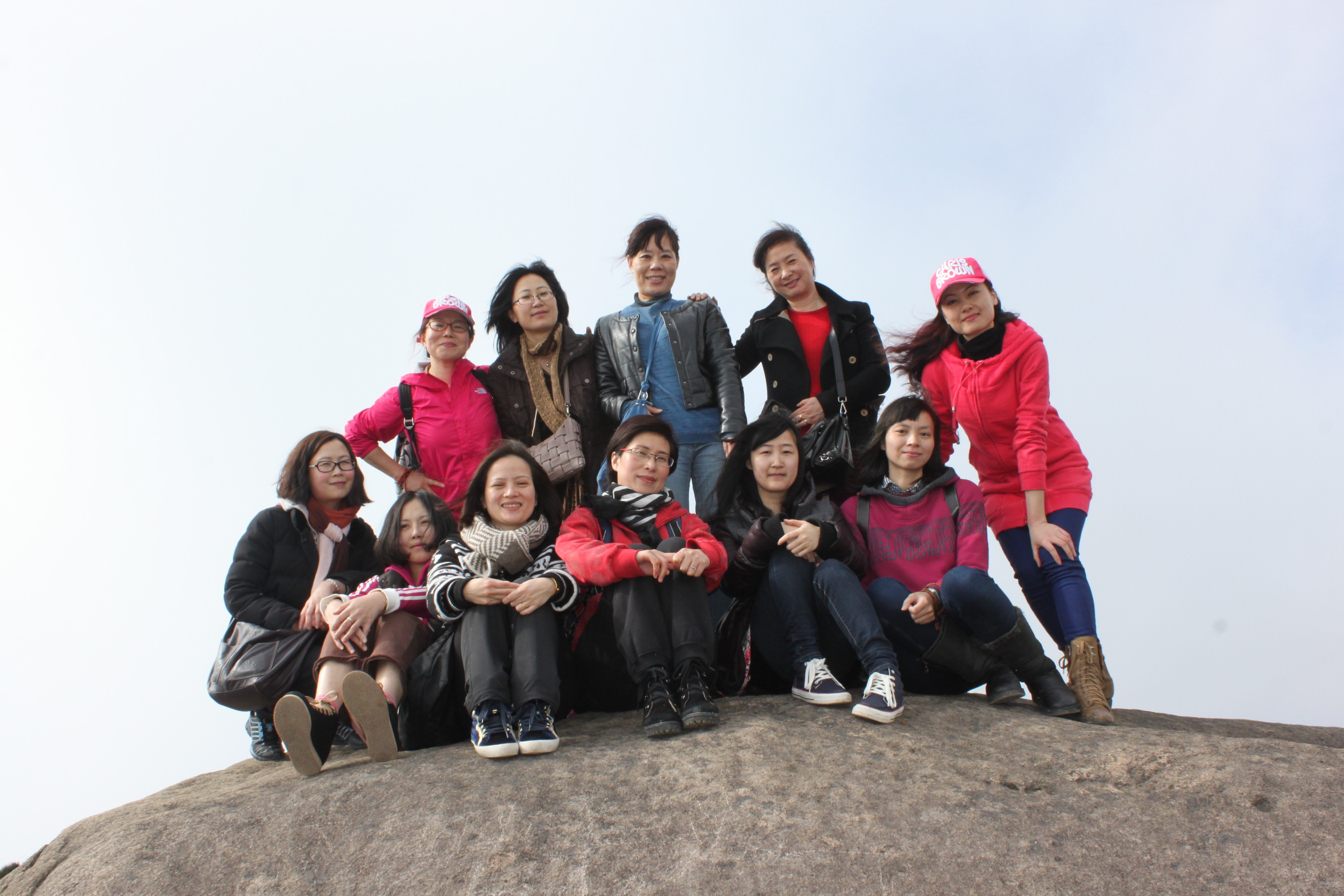 行至玉苍山脚下,女同胞们开始摩拳擦掌。玉苍山景区融文景观与山、石、溪、瀑、湖、林、寺为一体,雄浑幽秀,兼而有之。主峰大玉苍海拔921.5米,林木丰茂,奇石荟萃。这里无处不石,无石不美,各具神态,妙趣天成。向着顶峰攀登,女汉子们个个健步如飞。行至中途,有的放缓脚步,边走边欣赏山间风景。一路之上,相互激励,互相扶持,为达到顶峰成为真正的英雄好汉而欢呼雀跃,纷纷眺望美景,留下英姿飒爽的倩影。