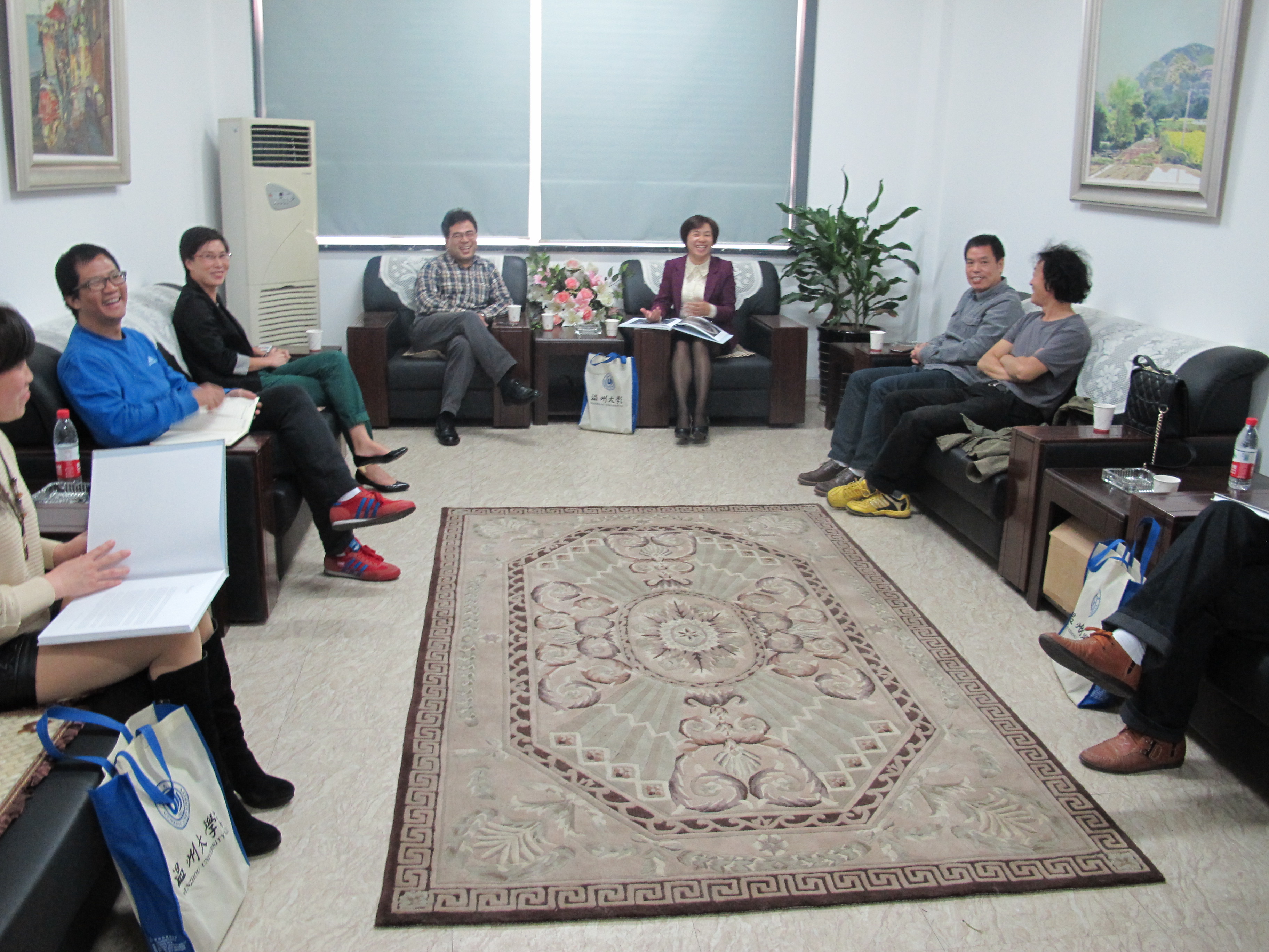2013年10月25日,青田中山中学校长严银红一行五人来麻豆视频 参观交流。院长李运河、党总支书记郑彩莲、副院长蔡可群等出席了座谈会。
