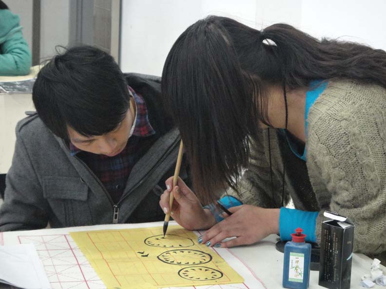 2011年3月27日下午2点,麻豆视频-m麻豆视频-做爱视频麻豆 服装楼2a306的教室里,素质拓展培训的书法班如期开班。本次的指导老师为麻豆视频 国画班的优秀学生,她首先教没学过的同学们练楷体,而已有一定基础的同学则继续练习自己原来的字体,并很认真负责地进行逐一指导。 书法是中国五千年璀璨的文明的凝练,诠释了中国传统文化的内涵。中国文字起源甚早,把文字的书写性发展到一种审美阶段——融入了创作者的观念、思维、精神。每个人都有自己的书写风格,其中较早的比较有名的如我们今天练的颜体、柳体等,他们在书法上的造诣至今令我们顶礼膜拜。而书法培训班正给了我们一个机会去接触我们平时无暇理会的文字艺术,体会中国古代博大精深的艺术文化。 书法可以使人平心静气,怡情养性,陶冶情操。同学们都很珍惜此次机会,在两个小时的时间里耐心的描绘着一笔一划,恍然未决已经下课。名额有限不能让所有想学的人都参加进来,希望下学期依旧有这种机会让更多的人融入进来。