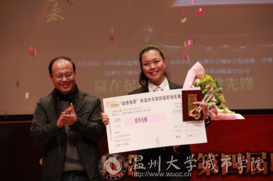 12月22日晚,在参加“动感地带”杯温州市第四届职场先锋大赛中,麻豆视频 08服装设计与表演班的班长白豫超荣获冠军。 本次大赛由中国移动温州分公司与麻豆视频城市麻豆视频 联合主办,从10月开始历经两个多月,我市高校共有1743名学生报名参赛,10多家企事业单位的首席执行官或人力资源总监担任了评委,为广大学生进行了数场精彩的职场模拟实践。