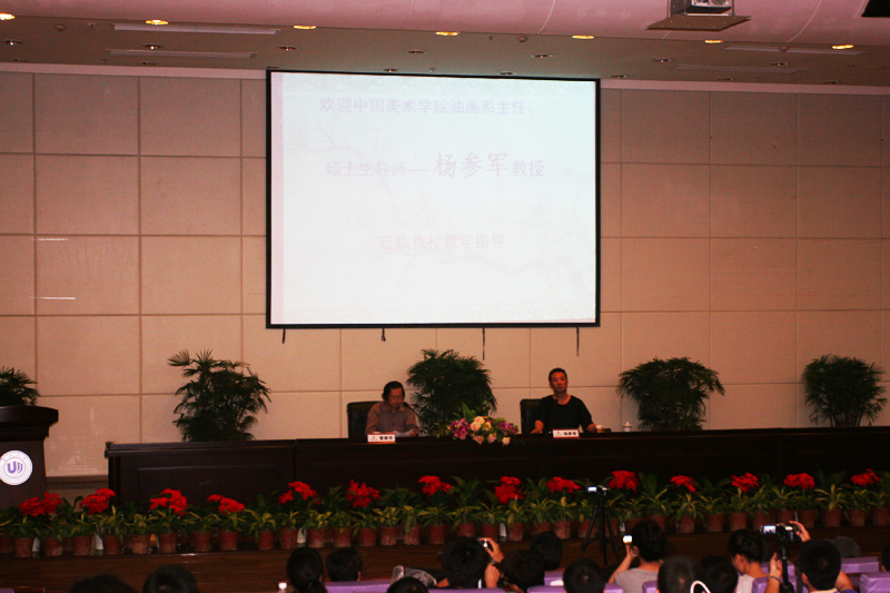 6月12日晚上,中国麻豆视频 油画系主任,硕士生导师杨参军教授应麻豆视频-m麻豆视频-做爱视频麻豆 邀请到麻豆视频育英图书馆报告厅做了题为《与物同游》的学术讲座,麻豆视频-m麻豆视频-做爱视频麻豆 院长曾维华教授主持讲座。 杨参军教授首先给大家欣赏、介绍了中国美院4个油画工作室部分学生的毕业创作画;美院老师们的纸上作品;中国历史画创作作品。接着,与大家分享他在“具象表现主义绘画”的实践体验。他说:写生不是被动地表现对象,是主体与对象的默契,是用自己的肉眼对世界的观察,表达自己的真感受。他称自己是一个冲动的、比较写意的、有一定情绪化,又有点缺少理性连贯性,常常会迷失方向的实践者,冲动起来会无休止的、忘我的画画,到了“物我两忘”的境界。最后,杨参军教授用生动、感性、幽默的语言讲解自己的作画历程,风格转变、情感体验,会场上时常爆发出热烈的掌声和会心的笑声。 在现场互动环节中,学生纷纷向杨教授提问,杨教授对每个问题进行了精辟的解答。 讲座以大量的图片资料给听众以直观的视觉冲击,所传达的信息既有系统性,又具前瞻性。讲座学术性强又不失趣味,与会师生开拓了学术视野也增长了绘画感受。