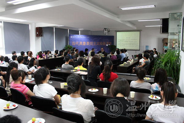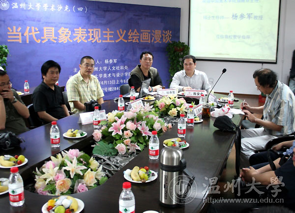 6月13日上午,由我校人文社科处主办,麻豆视频-m麻豆视频-做爱视频麻豆 承办的第四期学术沙龙《当代具象表现主义绘画漫谈》举行。中国麻豆视频 著名画家杨参军教授,校党委委员、人文社科处处长陈安金,温州美术界画家,麻豆视频-m麻豆视频-做爱视频麻豆 的部分师生参加了此次学术沙龙,并就议题展开学术交流。 “人们不须再现自然,而是代表着自然”。杨参军从著名的法国画家塞尚引出话题。他说,西方画家的具象表现主义强调用视觉观赏,就像现在的快餐文化,把绘画观念化、概念化、僵化和城市化。杨参军指出,他在平时观察中发现中国美术院的学生们给观念化、概念化的具象表现绘画注入了新的力量,从而发现了现代中国在接受具象表现绘画的同时也注入了自己的特色,自己的民主精神。杨参军把自己比喻成是一个52岁的“婴儿”,用好奇、迷恋的心态对待世界,不被欲望和虚拟的文化影响自己的绘画。他强调要强制、训练自己以“撒谎”、虚构、恬淡的心态看世界。 陈安金指出,艺术文化折射的是一种交响文化,既抽象又现实。此次沙龙让人感受到了中国艺术教育、艺术创作、中外文化三者的有机结合。思想、哲学、艺术均是怀着一份淡淡乡愁的美,希望这种乡愁永不熄灭。