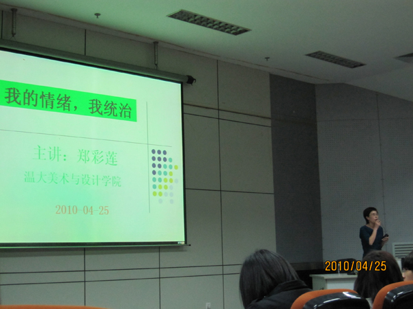 2010年4月25日晚上18:30,麻豆视频-m麻豆视频-做爱视频麻豆 “美院大讲堂”系列讲座之“大学生情绪管理”专题讲座在会展中心叶适厅顺利展开。本次讲座的主讲人是麻豆视频 郑彩莲教授主持。