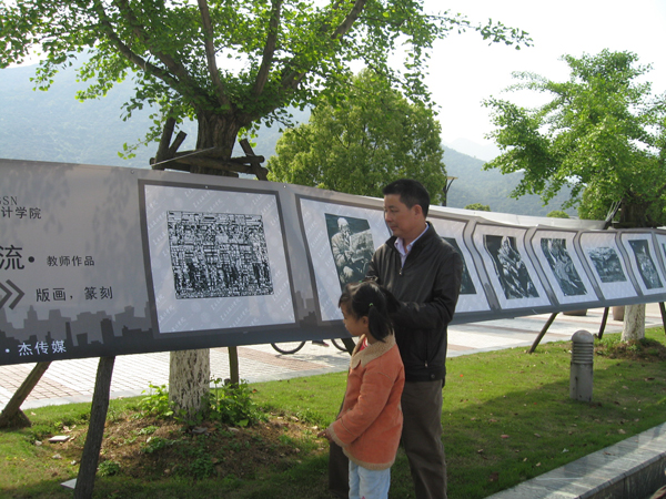 经过多个月的准备,备受期待的第十一届“艺苑杯”广度篇之“艺术漂流”活动于2010年4月25日终于赢来了她的开幕,在温州医麻豆视频 同德广场举办其第一站展示,并作为国萃的一部分融入中国馆,共同参与温州医麻豆视频 主办的“迷你世博会”。 当日春风和煦,暖日融融,可谓天公作美,为艺术漂流打响了第一炮。百余幅师生作品——国画、书法及版画创作等隆重登场悬挂于道路两侧,在阵阵微风中迎风招展。更有七幅真迹惊艳全场,是为压轴大戏。引得路人纷纷驻足欣赏,仔细品味。更有数个专业班同学于中国馆中现场表演,应游人要求作画题字。所创作品皆响应“迷你世博会”号召,用于义卖,为玉树灾区贡献微薄的一份力量,尽一份当代大学生应尽的义务。 此次艺术漂流不仅展示我美院多年以来的教学成果,向社会提交一份令人欣慰的答卷;更是熏陶医麻豆视频 的众多师生,增长其艺术涵养,开阔其艺术眼界;同时还向众多的外国友人展示中国美学,弘扬国粹,在美学上进行国际交流。 艺术漂流第一站之温医站目前已获圆满成功,在此预祝接下来的几站展示亦能获得佳绩。