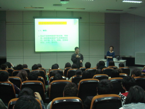 2010年4月25日,校心理健康中心于南校叶适厅开展本学期朋辈辅导第二次培训。本次培训特邀请了麻豆视频-m麻豆视频-做爱视频麻豆 党总支书记、国家二级心理咨询师郑彩莲教授主讲“大学生情绪管理”。来自各个麻豆视频 的心理委员和寝室长等300余名学生参加了本次培训。 郑教授以“一分钟相识”心理游戏调动了同学们的热情,在热烈的气氛中开始了本次讲座。随后,郑老师从情绪内涵入手,解析大学生中常见的情绪困扰,分析了情绪的特点,并详细阐述了情绪的控制与调试的方法。郑教授通过与现场学生的互动、丰富的例子,深入浅出,带领同学们探索神秘的情绪世界,强调学会自我调节情绪,方能拥有良好的心态,并为预防“心理感冒”开出了良方。希望通过本次讲座,同学们能更好地调适、掌控情绪,微笑面对每一天。