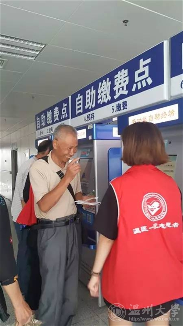 我们在线上线下均进行了关于残障人士的问卷调查活动,负责组织的同学在温州市内沿街发放调查问卷,并在网络上发布问卷,成效良好地收集到了社会各界人士的意见和建议。在温州附一医展开的医院志愿者活动中,队员们在自助服务机旁帮助有需要的人操作机器,以及在有人需要帮助的时候提供信息和指引。赠人玫瑰手有余香,我们在帮助他人的同时也感受到快乐。