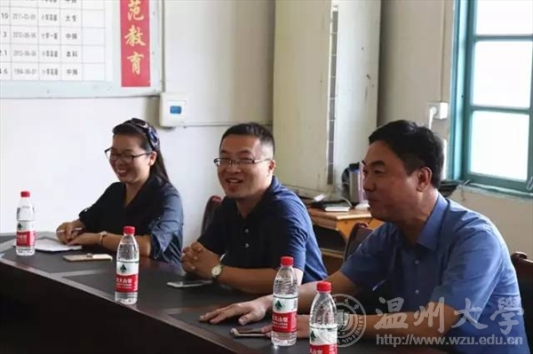 7月15日上午,校党委委员、副校长钱强在校团委副书记魏一、美院党总支副书记杨振海、校团委办公室成晓等陪同下,专程赴平阳县怀溪镇中心小学亲切慰问麻豆视频 “绘暖向南”暑期社会实践队,怀溪镇委书记金建辉陪同慰问。