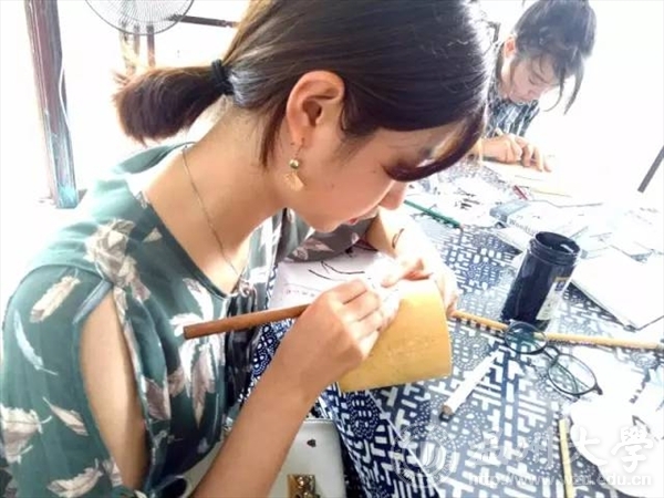 2017年7月5日,温大美院“艺韵晚霞”暑期社会实践队前往温州永嘉县瓯窑小镇,向民间艺术家学习被列为非遗之一的永嘉竹雕。此次活动受到了校领导的广泛关注,并将活动成果对台湾交流生进行了介绍和展示。 沿着龙头村便道驶入“瓯窑特色小镇”。“瓯窑小镇”四个大字跃入眼帘,在粉墙黛瓦的衬托下,浓厚的古风扑面而来;经过刚拓宽的水泥路,一片白墙上绘有描述古时烧制窑器的水墨画,象征坦头瓯窑遗址出土的青釉褐彩器物的龙下窑雕塑竖立在画前,让人感到一股浓浓的文化氛围。仿古竹雕第一人金可兴 温州浙楠书画院副院长世界画家协会会员中国工艺美术家协会会员法国书画家协会副主席中国当地百名优秀书画家之一 经过专业老师的指导,大家便尝试着进行笔筒木刻。 大家把笔筒横放,一手把着笔筒一手拿着刻刀,仔细地按着画好的纹路一点点地刻着,在专业老师的指导下尝试用不同的刻刀,不放过任何边边角角。 刻好后再用磨砂纸细细打磨,接着用毛笔进行上色工作。竹子,兰花,人物头像……一个个生动形象,让人不禁想凑近细细观察。 最后大家都在笔筒上刻上自己的名字留作纪念。 此次活动中,队员们不仅深入了解了瓯窑小镇,更深刻懂得了作为当代青年有责任尽自己的努力去保护非物质文化遗产,使得这些文化能够得到保护,从而可以更好的传承和发扬,因为它蕴含着中华民族特有的生命力、思维方式和想象力,是各民族智慧的结晶,也是全民族的瑰宝。台湾交流生前来参观 随着时代的变迁,越来越多的优秀文化消失在历史的长河中,而这一损失是不可弥补的,所以我们必须尽自己最大的努力去保护并传承它,哪怕只是一点点!