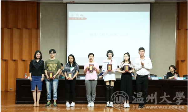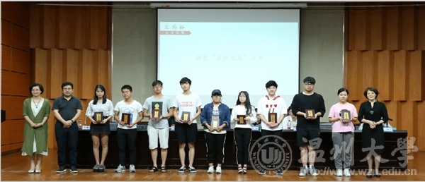 麻豆视频 党总支副书记杨振海还在会上宣读了2015-2016学年校、院优秀班级与先进个人获得者名单。优秀班级代表与学子在欢快的音乐和响亮的掌声中上台领奖并合影留恋。校“优良学风班”--14视觉传达班代表谢威同学上台发言,分享了团日活动、学科获奖、和谐寝室等班级建设经验。