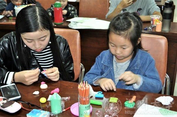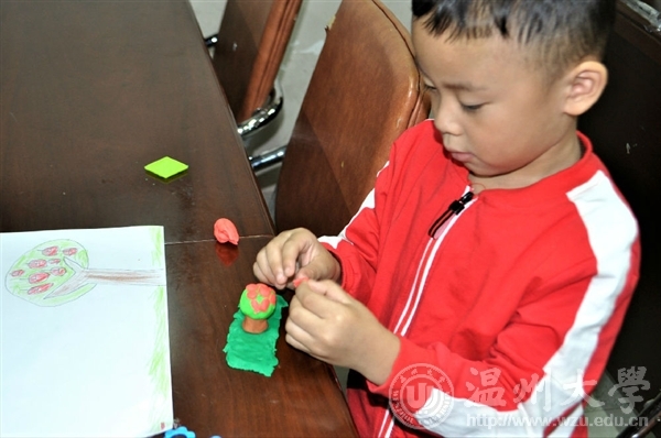 周姿肖同学向小朋友们提问:你们觉得破坏环境的做法有哪些呢?小朋友们有的说随地吐痰、有的说砍树……接着又问,“那么保护环境的方法有哪些呢?”小朋友们纷纷举手,回答地很出色,并得到了果冻作为奖励。随后小朋友们看了一个节水的小短片,幽默且具有教育意义。在此同时,志愿者们也开始发放绘画工具。接下来的活动是让小朋友们画出自己想在下个植树节种的树。有的画苹果树、桃树、普通的梧桐树……画的最多的还是桂花树,茂密的树冠上长出一簇一簇小小的金黄色小花,芬芳且可爱。紧接着进行的是最后一个环节也是最有难度并且有趣的一个环节,需要小朋友们把画的树用橡皮泥捏出来。在志愿者们的帮助下,小朋友们用手揉一揉,捏一捏,搓一搓,一个个生动形象的作品就呈现在眼前了,虽然小朋友们的动作显得有些稚嫩,但同时也体现出了他们的天真,看来他们是想要把种树的决心揉进去啊。几个小时飞速闪过,到了评比环节,小朋友们拿着自己的作品有序的往讲台走去。有立体的树,也有躺在纸上平面的树,其中有个很棒的小朋友做了一个小树林出来,十分漂亮。
