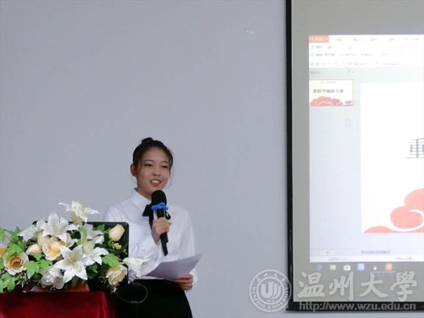 重阳节是寄托家人团圆平安的传统节日,在1989年被赋予“尊老、敬老、爱老、助老”的寓意。参赛选手们从重阳节的由来、习俗、美食、敬老等多方面入手介绍了重阳节,从古诗词中中体悟重阳佳节给人带来的情感,并结合实际生活表达出了自己对于长辈深深的爱。