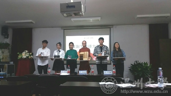 在所有选手发言都结束后,俞莹莹同学首先对选手的发言做了总结,并指出了选手在比赛中的不足,传授了相关的知识经验给参赛选手。最后李雪涛老师为获奖的选手颁发了获奖证书以及精美的奖品,也对没有获奖的同学给予了充分的激励和肯定,为本次活动画上了圆满的句号。
