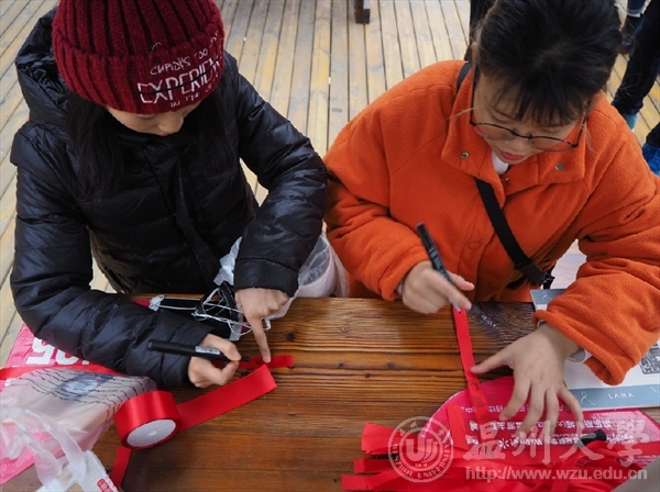 寒冷的天气丝毫没有影响温大学子对死难者的缅怀。路过的同学们纷纷加入到书写祈福语的行列中,书写完毕后又亲手将红丝带系到树上,借此来寄托自己的一份哀悼。同祭民族之殇,共圆复兴之梦,国家强大、民族强盛,始终是每一个中国人生存、发展的基本保障。本次活动不仅是对亡灵的悼念,更是对当代青年人的一个警醒,我们要唤起同学们对和平的向往和坚守,而不是要延续仇恨。同时我们也应以史为鉴、面向未来,共同为人类和平作出贡献。