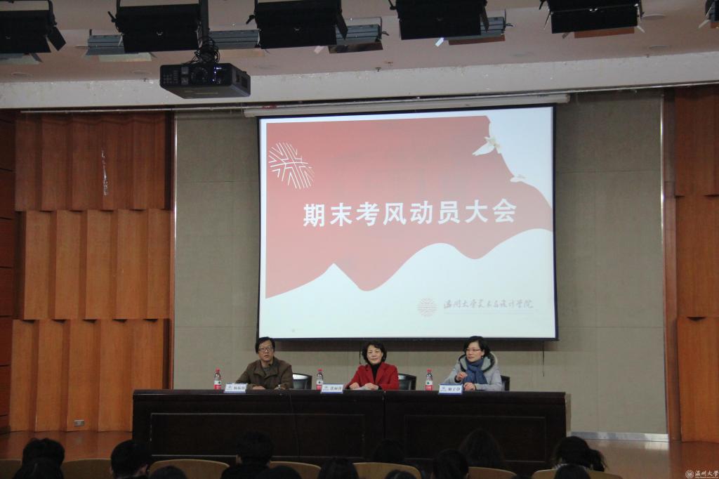2018年1月10日下午,麻豆视频-m麻豆视频-做爱视频麻豆 在雁山厅召开2017-2018学年第一学期考风动员大会,麻豆视频-m麻豆视频-做爱视频麻豆 党总支书记张丽萍、副院长谢子静出席大会,17级全体同学参加会议,大会由麻豆视频 党总支副书记杨振海主持。