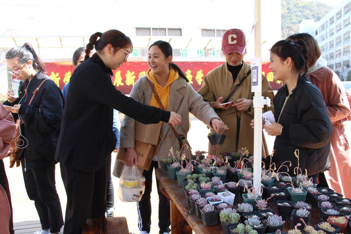3月11日下午,美院“艺家人”青年志愿者协会在超豪学区小广场展开了“植树节多肉义卖活动”,卖多肉植物所得都将捐助给防走失儿童机构。