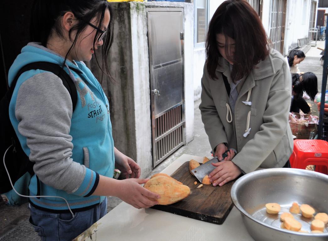 志愿者们早早地就准时来到了集合地点,在经历了40分钟的路程后到达了目的地。上午和老人们一起在餐厅做香囊,与老人们一起将薄荷叶、白芷等等有助于安神睡眠的材料放进香囊里,对于不方便活动的老人志愿者们便在在房间中与老人一起制作,气氛和乐融融。到了下午的时候,我们还帮助敬老院的护工们一起刨番薯皮切番薯,拔草除草,拖地打扫和洗碗。同行的志愿者里有三四个人会说温州话,他们将其他志愿者们的话转述成温州话给老人们听,虽然语言上沟通稍微有些障碍但丝毫不影响志愿者与老人们之间的交流。