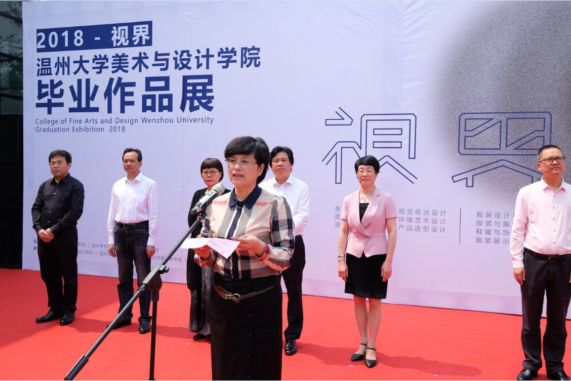 随后,由温州市委宣传部常务副部长邱小侠女士致辞。她对本次作品展的举办表示热烈的祝贺,她指出,“本次作品展的举办,正是积极践行社会主义核心价值观、繁荣温州地方文化艺术事业、助推温州文化强市建设的重要成果。”