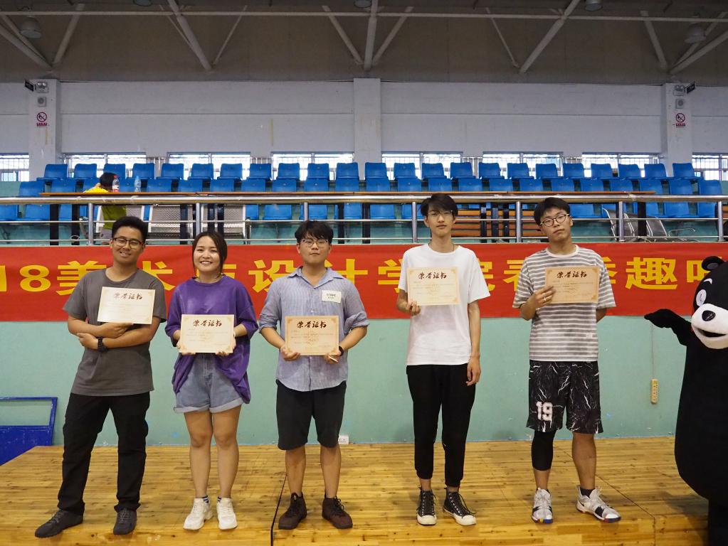 5月13日下午,美院2018春季趣味运动会在南校体育馆举行,由各班组成的13支队伍参加了比赛。