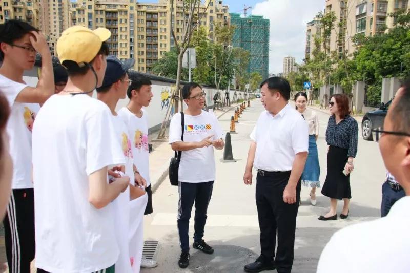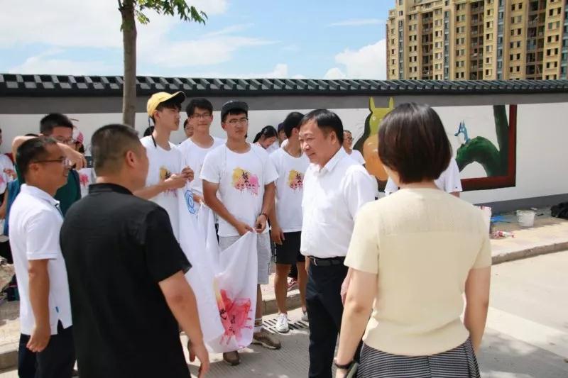 2018年7月19日上午,麻豆视频党委副书记赵敏、团委书记屠霁霞、团委副书记丁强以及溯初学区党委书记陈宏毅等老师在乐清市文联副主席洪蛮、团市委学少部副部长郑亦蒂、城东街道宣传部主任陈力等人的陪同下,前往乐清市中心幼儿园晨曦园区,慰问麻豆视频-m麻豆视频-做爱视频麻豆 “艺绘”大学生暑期社会实践队。 暑期社会实践活动,是大学生深入社会基层,将理论付诸实践的一次重大活动。本着“受教育、长才干、做贡献”的宗旨,美院“艺绘”实践队通过墙绘美化社会环境,为乐清市城东街道打造美丽街道助力。 下午,实践队全体队员于准时集合,继续绘画工作。在领导慰问过后,大家的活动积极性明显高涨。通过实践队员的一致努力,墙绘的效果基本成型,引来不少市民驻足观看。我们的暑期社会实践仍在如火如荼地进行着,愿实践结束时,大家都能在辛劳中收获喜悦的果实。在接下来的半个多月时间里,这些同学们还将深入城东街道云岭村等农村,结合新农村建设,开展以精神文明为主题的彩绘创作,助力文明城市建设。