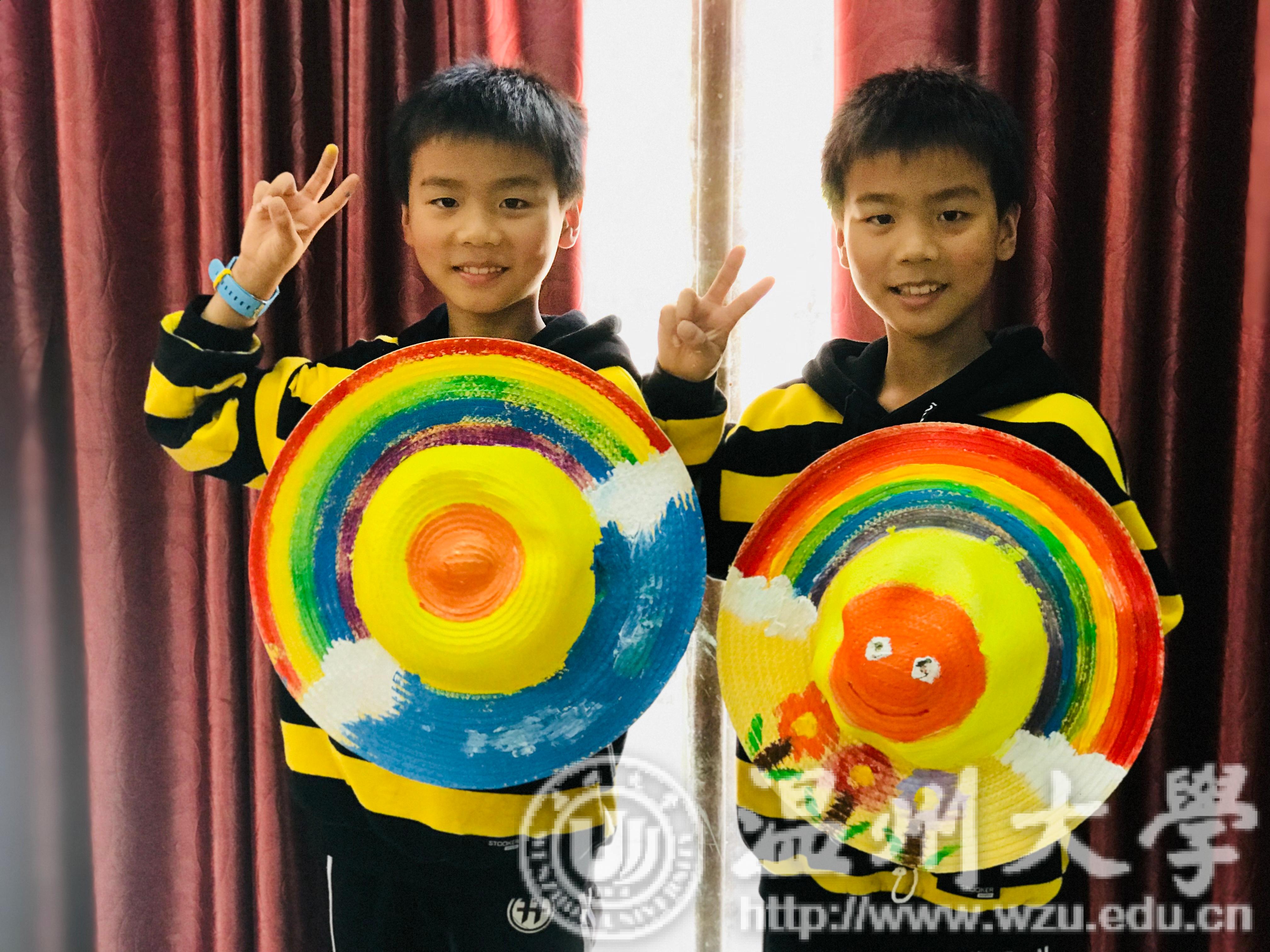 10月13日上午,温大美院“艺家人”青年志愿者协会携手一批富有童趣与爱心的志愿者们,走进了梅泉社区文化大礼堂,给这里的一群可爱的小朋友们开展了一节生动有趣的帽子小课堂。 11日,来自皓强美术团的董老师为志愿者们开展了教师培训活动,老师精彩的演讲使志愿者们收获满满。13日,志愿者们准时到达社区,一落座,小朋友们就会被分配到一位志愿者哥哥或者姐姐身边,由他们全程带领和陪同。首先,讲解的老师向小朋友们抛出“帽子的起源”、“帽子的种类”等问题,答对的小朋友可以获得精美小礼品一份。接着还给小朋友们普及了戴帽子的时候应该注意的礼节问题,小朋友们对帽子的理解又更加深了一个层次。在老师替小朋友们解答了心中的疑问之后,志愿者们和小朋友们开始了今天的重头戏——草帽绘画。工作人员给每一位小朋友分发一顶草帽,作为绘画创作的“白纸”;每一位小朋友也会收到一支水粉笔;当然也有必不可少的调色纸;接着工作人员每人一种颜色有序地给小朋友们倒上颜料,红、粉、黄、橙、蓝、绿、白等等颜色一应俱全。有的小朋友们直接上色,也有的小朋友们构思了一阵之后先用黑色记号笔画出图形,他们就这样在志愿者哥哥姐姐们的结对带领之下开始大展拳脚。 画完之后,志愿者们便领着小朋友们去太阳底下晒干自己的原创草帽作品,各色各样草帽在阳光下晒着,所有参与者的心也被晒得暖洋洋的。为期半天的志愿者活动让志愿者们与孩子们都结下了深厚的友情,此处支教活动不仅通过志愿者自身的努力,使小朋友们更加积极主动的完成自己的创作,并且增强了大学生的奉献精神和服务意识,更多的是我们收获了友情与快乐!